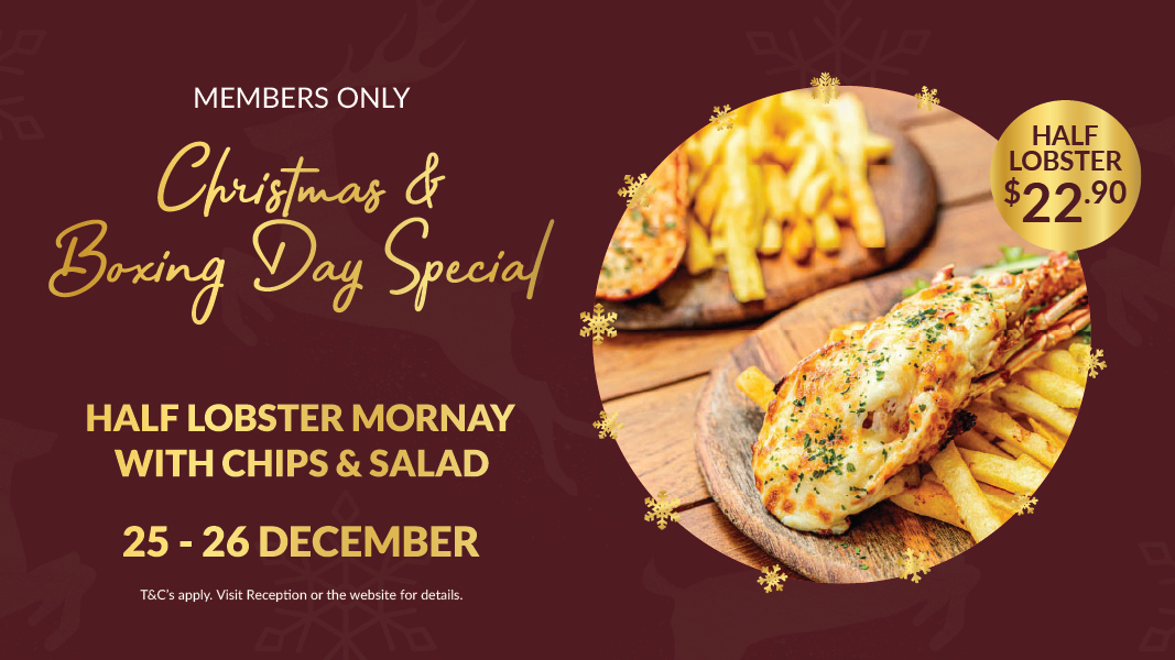 Half Lobster Mornay Served with Chips & Salad for only $22.90. It’s the kind of dish that brings everyone to the table.
