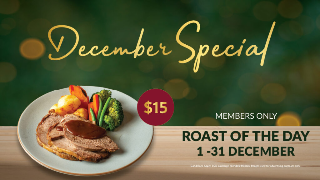 Make December delicious with our members only Roast of the Day for just $15. Treat yourself to a hearty, homestyle meal that feels like comfort on a plate, book your table and enjoy it all month long.